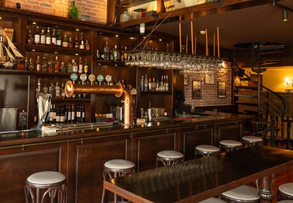 Σχεδόν τριάντα μπύρες ρέουν από βαρέλια ή μπουκάλια, φέρνοντας κοντά σου τον αφρό της Ιρλανδίας αλλά και τις πιο ψαγμένες ελληνικές ετικέτες. Δίπλα τους, μια κάβα με ουίσκι που μυρίζει βροχή στη Σκωτία, τζάκι σε ιρλανδική pub, bourbon σε ξύλινο βαρέλι.