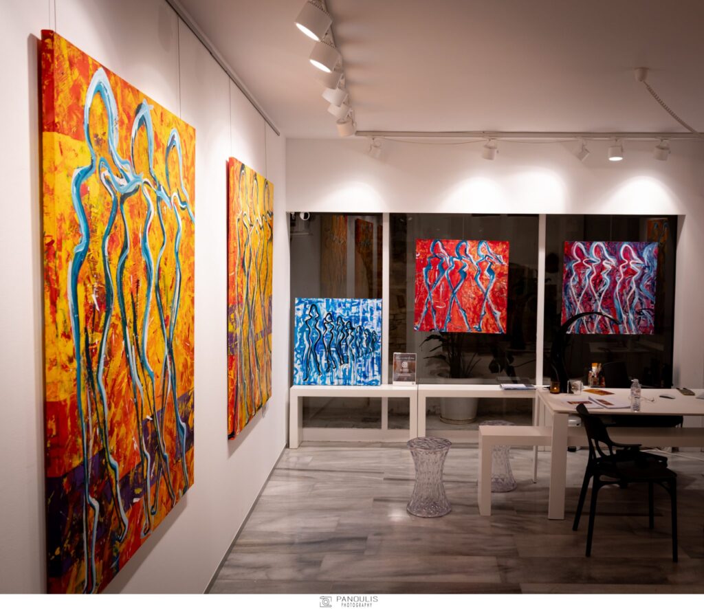 Η έκθεση συγκροτεί μια αφηρημένη εξπρεσιονιστική ενότητα με έντονα ανθρωπομορφικά στοιχεία, δυναμικές πινελιές και ισχυρές χρωματικές αντιθέσεις. Μέσα από την αφαίρεση, την κίνηση και τη συλλογική εμπειρία, τα έργα διερευνούν την ανθρώπινη παρουσία ως διαρκή ροή ενέργειας.