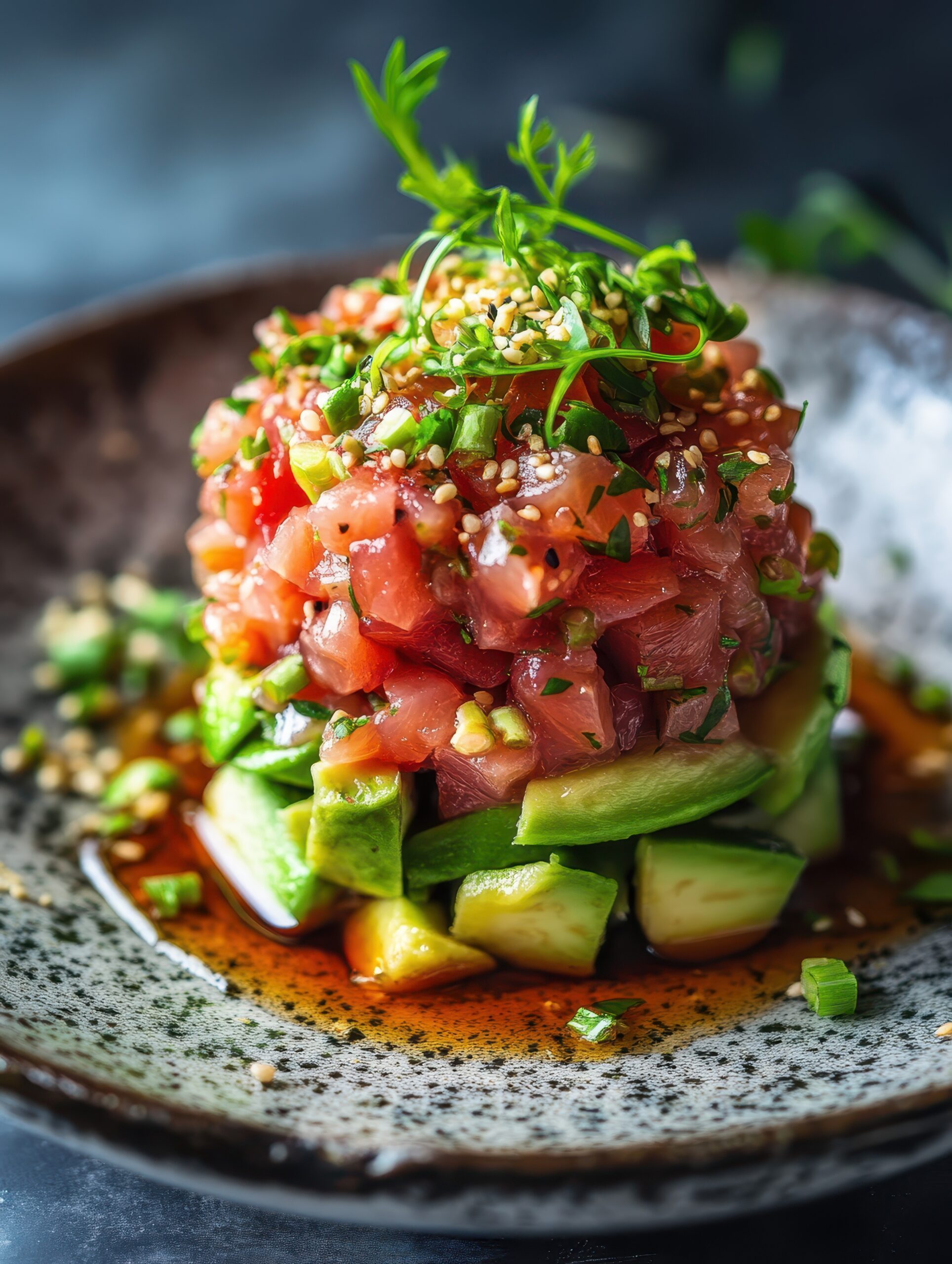 Το ταρτάρ τόνου με αβοκάντο είναι έτοιμο να σερβιριστεί.